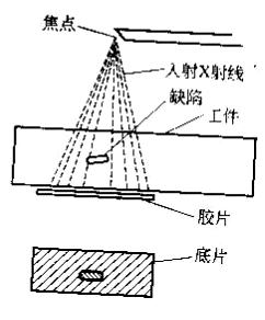 射線照相法是根據(jù)被檢工件與其內(nèi)部缺陷介質(zhì)對(duì)射線能量衰減程度的不同,使得射線透過工件后的強(qiáng)度不同,使缺陷能在射線底片上顯示出來的方法。如圖2所示,從X射線機(jī)發(fā)射出來的X射線透過工件時(shí),由于缺陷內(nèi)部介質(zhì)對(duì)射線的吸收能力和周圍完好部位不一樣,因而透過缺陷部位的射線強(qiáng)度不同于周圍完好部位。把膠片放在工件適當(dāng)位置,在感光膠片上,有缺陷部位和無缺陷部位將接受不同的射線曝光。再經(jīng)過暗室處理后,得到底片。然后把底片放在觀片燈上*可以明顯觀察到缺陷處和無缺陷處具有不同的黑度。評(píng)片人員據(jù)此*可以判斷缺陷的情況。